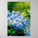 l'hydrangée bleue fleurit sauvage le long d'une route arrière.
