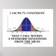 Montrez l'humour geek de vos statistiques irréfléchies avec cette affiche de courbe en cloche avec des pourcentages sous la courbe et les statistiques classiques disant : "Je suis sûr à 99,7% que je tombe dans les 3 écarts standard de la moyenne". Faites que d'autres fassent une double prise avec une dose d'éducation et d'attitude de confiance scientifique statistique aujourd'hui!
