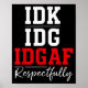 Poster Idk I Idgaf Respectfully Funny Saying