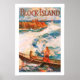 Affiche de voyage vintage pour la nouvelle Angleterre Block Island, une station balnéaire au large du Connecticut.