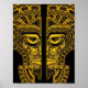Poster Illusion du masque Jaune Maya sur le noir