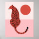 Poster Illustration d'animaux de léopard moderne rouge et