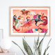 Fées & dragon avec illustration magique rose pour décorer une salle pour enfants