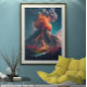 A première vue, il ressemble à un volcan en éruption ordinaire. Mais un regard plus attentif révèle un bel oranger qui pousse sur le côté du volcan avec des racines qui ressemblent à de la lave et des feuilles qui ressemblent à du feu. Un beau paysage surréaliste avec une rivière, de jolis arbres rouges et roses en contrebas avec de la fumée et des cendres qui s'envolent dans le ciel. Une pièce de conversation fantastique et un bel ajout à votre collection d'art.