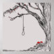Illustration de l'oie d'un hangman juste accrochée à l'arbre avec des champignons rouges à la base de l'arbre.