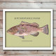 Poisson de mérou (Epinephelinae) illustration artistiquement réalisée avec des noms latins et communs en typographie pour les amateurs de pêche du mérou. Les mérous sont communs sur la côte du golfe de Floride (ainsi que dans de nombreux autres endroits) où de nombreux restaurants proposent un sandwich aux mérous signature.