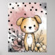 Poster Illustration fantaisiste de chiot en aquarelle flo