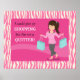 Un dessin mignon d'une fille aux cheveux attachés dans une queue de cheval. Elle est habillée confortablement dans un débardeur et lâche rayures roses et blanches, tee-shirt à manches longues, pantalon gris et chaussures roses. Elle tient deux sacs à provisions. Le texte amusant dit : "Je pourrais renoncer au shopping, mais je ne suis pas une lâcheuse !". Un motif d'impression zébrée rose et blanc pour la bordure. Un design drôle et girly pour les accros du shopping.