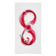 Infinity symbole of continuous stream of red pouring into glass glass glass on white background.