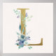 Poster initial L Golden et Blue Floral Monogram