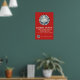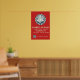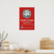 Affiche élégante avec badge de coiffeur rouge blanc et bleu rétro sur arrière - plan rouge. Customisez avec le nom et les détails de barbershop, et ajoutez votre code QR personnalisé pour votre site Web ou comptes de médias sociaux.