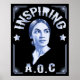 Dessin d'Alexandrie Ocasio Cortez en bleu, avec "Inspiring AOC" texte. T-shirts, sueurs, cadeaux de nouveauté.