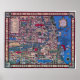 De 1931 à l'apogée de l'Interdiction, une carte picturale de Chicago montrant tous les personnages de gangsters, épisodes, tueries, lieux et activités humoristiques dans tout le Chicago de Capone, dans les détails extraordinaires. Ci-dessous, un portrait d'un Al Capone couronné est le titre : A Map of Chicago's Gangland from authenticity (Une carte du Gangland de Chicago à partir de sources authentiques). Conçu pour inculquer les principes les plus importants de la piété et de la vertu chez les jeunes ... et dépeindre graphiquement les Maux et les Péchés des grandes villes. Si vous êtes un passionné de l'histoire de la prohibition, cette carte pourrait très bien être un joli point focal pour votre collection. Il y a des dizaines de symboles crânes et osseux noirs qui indiquent partout où des meurtres ont eu lieu. Notable sur la carte : J'ai appris qu'un PIG AVEUGLE était un endroit pour acheter de l'alcool bootleg. Les avions canadiens volent en fret "spécial". Les bateaux l'apportent aussi. Armes à feu, jeux d'argent, bombes et alcool. 50 morts au coin ... près de Little Italy. Le territoire et le siège de Capone. Dead Man's Tree ... 30 ordres d'exécution postés sur l'arbre ... et tous exécutés. Anecdotes et humour sur la culture et le comportement de Gangster. ... et bien plus encore. Assurez-vous d'engendrer la conversation partout où elle est affichée.
