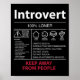 Poster Introvert 100% Loner Garder loin des gens - Intro