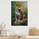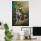 Ein HD-Porträtposter, das einen Jaguar im Dschungel im Malstil darstellt