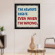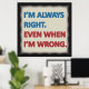 Poster avec design avec le texte "I'm Always Right. Même quand je me trompe" en bleu et en rouge.