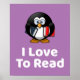 Mignon et drôle "I Love To Read" manchot tenant ses livres.