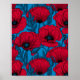 Poster Jardin de pavot rouge sur bleu