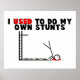 C'est ce que vous obtenez quand vous faites vos cascades! Blessure grave, traumatisme crânien, et cette mort désagréable et prématurée ! J'ai manqué ça de tant !