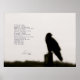 Cette oeuvre d'art poétique présente une image originale et le texte intégral du poème "i will not wait" de Silvi Alcivar : "Je n'attendrai pas de devenir un oiseau. déjà je trouve des plumes entre les draps de mon lit, foncé, irisé. contrastez l'oeil jaune vif d'un starling, l'aile d'un mallard, la dame-getters d'un paon. ce matin ravens ramassé des choses brillantes Je leur ai offert à mes pieds, en riant, comme s'ils savaient eux aussi ce que je deviens chaque soir." - silvi alcivar 2010 (© Le magasin de poésie)