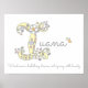 Jolie affiche de nom avec monogramme I, parfaite pour la chambre ou la salle de jeux d'une fille dans des tons de gris, blanc, jaune, rose et violet. Personnalisez avec le nom de votre enfant commençant par I, et la signification du nom pour un cadeau unique et vraiment personnalisé pour la chambre ou la nurserie de votre enfant, cet exemple est pour le nom I Iuana vent sur un ruisseau bouillonnant, intrigant avec beauté. Jolie impression idéale pour un nouveau-né, un cadeau de baptême ou de shower de bébé. © Dessin unique de cœurs et de fleurs avec monogramme de lettre I et conception graphique par Sarah Trett. www.sarahtrett.com pour www.mylittleeden.com