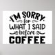Poster Je suis désolé pour ce que j'ai dit avant le café