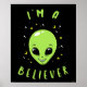 "I'm A Believer", graphique alien dessinée par bCreative, montre une tête d'alien verte et souriante entourée de lunes et d'étoiles ! Cela fait un grand cadeau pour la famille, les amis ou un régal pour vous-même! Ce graphisme amusant est un grand ajout au style de n'importe qui. bCreative est un créateur et un donneur de licence de design et de propriétés originales et tendance. ©LCT Creative. Licence de bCreative.com