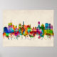 Elegant Watercolor Skyline of Jerusalem, a city in the Middle East, located on a plateau dans les Judaean Mountains between the Mediterranean and the Dead Sea. It is one of the olau cities in the world