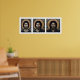 L'image médiane de ce triptyque est le premier portrait survivant de Jésus-Christ. Peinte il y a environ 1400 ans, cette image est située dans le monastère de Sainte Catherine dans le Sinaï, en Egypte. Il a été peint avec une technique de cire connue sous le nom d'encausse. Les deux côtés du visage de l'image centrale sont asymétriques, probablement au nom du réalisme et des préoccupations théologiques. Dans ma manipulation numérique (images gauche et droite de l'affiche), nous pouvons voir ce qui arrive au portrait en créant deux images parfaitement symétriques (et diamétralement différentes) de Jésus : la gauche est très humaine (Jésus), la droite le juge divin (Christ) à la seconde venue.