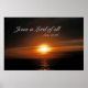 Poster du lever du soleil de Pensacola Beach porte le message : Jésus est Seigneur de tous, paraphrasé des Actes 10:36 Le soleil apparaît comme une boule rouge-jaune dans l'obscurité de la nuit avant l'aube.