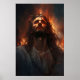 Jésus en feu, avec sa chaîne sur la tête, des expressions de caractère détaillées.
