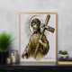 Cette image puissante représente Jésus-Christ portant gracieusement une croix d'or, symbolisant la force et l'amour divins. Son expression pacifique exsumera la compassion, invitant les spectateurs à réfléchir sur la foi, le sacrifice et la rédemption. Les accents d'or complexes mettent l'accent sur la nature sacrée de la croix, un phare d'espoir pour les croyants. L'oeuvre capture magnifiquement l'essence spirituelle du voyage de Jésus, inspirant un lien profond avec Son amour durable pour l'humanité. Parfait pour les espaces sacrés ou les étalages religieux, ce portrait radieux sert de rappel visuel du pouvoir transformateur de la dévotion et de la promesse de la vie éternelle.