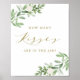 Affiche de Fleurs Blanches et Verdure à l'Aquarelle Jeu Combien de Baisers | Affiche 'Combien de baisers ?' avec des illustrations à l'aquarelle de fleurs blanches et de verdure avec un script élégant en or. Jeu de douche amusant et élégant, parfait pour les douches de mariage printanières et les baby showers. Les articles assortis sont disponibles.