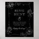 Affiche de jeu de chasse à l'anneau de douche nuptiale Rose Noir et Blanc. Voir la collection complète ici : https://www.zazzle.com/collections/black_and_white_modern_florals_collection-119316588023779707