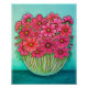 Un tableau floral stylisé et vibrant de cosmos dans de nombreuses nuances de rose dans un vase en verre sur un arrière - plan turquoise Imprimer par l'artiste populaire Lisa Lorenz