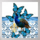 Poster Joli paon et papillons bleus