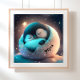 Poster Joli pingouin dormant Étoiles Lune Art Crèche