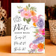 Ajoutez une touche d'amusement et de créativité à votre fête de remise des diplômes grâce à cette enseigne "Photo Guest Book" peinte à la main. Doté d'un design floral d'aquarelle délicieuse dans des tons vifs de rose, violet, orange et vert, ce panneau complète magnifiquement tout décor de célébration. L'élégante police de script, associée avec des instructions fantaisistes pour "Snap it! Imprimez-le ! Shake it!" encourage les invités à capturer des souvenirs et à laisser leur marque de manière unique et interactive. Idéal pour guider les clients vers votre station de livres d'invités photo, ce panneau ajoute une touche personnelle et élégante à votre journée spéciale.