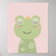 Jolie grenouille. Fond rose. Série de 5 impressions.