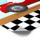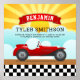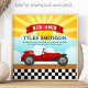 Affiche d'annonce de naissance pour chambre de bébé avec une typographie moderne et une voiture rouge mignonne sur un fond coloré de lever de soleil. Ajoutez tous vos détails charmants sur ce modèle facile à utiliser pour créer votre propre affiche de statistiques de naissance unique.