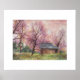 Belle aquarelle de style impressionniste. Un jour de crépuscule capturé au-dessus d'un ancien hangar à bois dans un champ d'automne parmi les arbres stériles dans les ozarks. Rose, lavande, jaune pêche orange, vert et brun. Grand ajout pour la maison ou le bureau.
