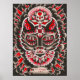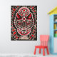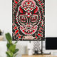 Design de chat noir et rouge frappant dans la tradition de Dia De Los Muertos.