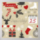 Joyeux Joyeux Noël design symboles - flocons de neige, cerf, calendrier, arbre de Noël, cadeau de Noël, patinage, coeurs, ornement de Noël, bas de Noël, ruban - décoration sur arrière - plan gris