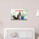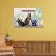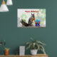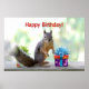 Photo d'un mignon écureuil debout à côté de deux petits cadeaux emballés et regardant directement la caméra. "Joyeux anniversaire !" est la légende, en rouge.