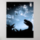 Un dinosaure allosaurus regarde le ciel bleu vif tandis qu'un ptérosaure vole au-dessus. Ce design peut être customisé en ajoutant votre propre texte ou vos propres images !
