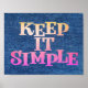 Bold, colorful typography with a grungy texture on a blue denim background says 'Keep It Simple.' This sloagn is one of the a familiar concept in successful recovery programs like as Alcoholics Anonymous, Narcotics Anonymous, Al Anon. It's also good advice for anyone wanting to live a successful, well-balanced life.