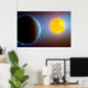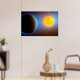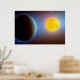 La conception de cet artiste représente le système Kepler-10 étoiles, situé à environ 560 années-lumière près des constellations de Cygnus et Lyra. Kepler a découvert deux planètes autour de cette étoile. Kepler-10b est, à ce jour, la plus petite exoplanète rocheuse connue, ou planète en dehors de notre système solaire (tache sombre contre le soleil jaune). Kepler-10c est l'objet de premier plan plus grand.