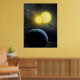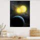 La planète Kepler-35 b, qui est de taille Saturne et apparaît bleue, orbite une paire d'étoiles tous les 131 jours.