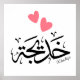 Poster Khadija calligraphie, nom en arabe, mot de passe