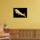 Cette affiche simple et élégante présente un poisson koi blanc et orange délicatement coloré nageant contre un arrière - plan noir pur.